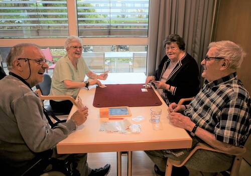Chez nous, c’est toujours la « personnalisation » qui guide l’animation : nous agissons en fonction des besoins et des désirs de chacun de nos hôtes AVS sur le moment T, et ce à n’importe quel moment T. Nos professionnels de l’animation échangent ainsi constamment avec leurs collègues des soins. Ils ont l’oreille attentive et l’écoute active. Ils se lient aux familles et nouent des liens forts avec nos résidents qu’ils connaissent bien, très bien.